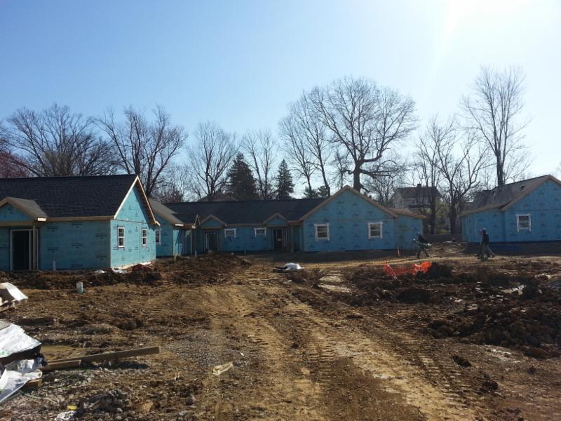Construction of Cary Crossing is moving right along. All units are framed and under roof, rough mechanicals are being installed in six buildings and drywall is being installed in four buildings. All units are ADA compliant.